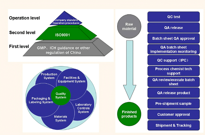 在遐瑞,产品的质量是通过从原料开始的层层质量保证来实现的,它包括对原料的测试与释放,主批记录的审核批准,执行批记录的发放,批记录执行的监督,QC中间控制及中间体的测试,批记录的审核,产品的释放,发货前检查及送样,发货跟踪等等。 质量活动贯穿于产品的整个生命周期。