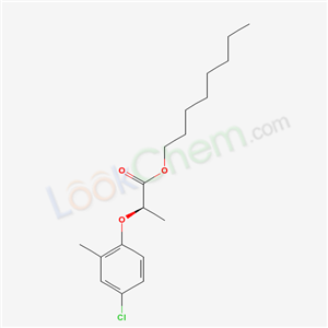 Octyl (R)-2-(4-chloro-2-methylphenoxy)propionate is a chemical compound commonly used as an herbicide in agricultural and commercial settings. It belongs to the class of chemicals known as aryloxyphenoxypropionate herbicides and is primarily used to control weeds and unwanted vegetation in a variety of crops, including soybeans, corn, and cotton. It works by inhibiting the growth of target plants and is known for its selective nature, meaning it primarily affects specific types of plants while leaving others unharmed. While octyl (R)-2-(4-chloro-2-methylphenoxy)propionate is effective in weed control, it is important to use it with caution and follow safety guidelines to avoid negative effects on the environment and non-target organisms. |