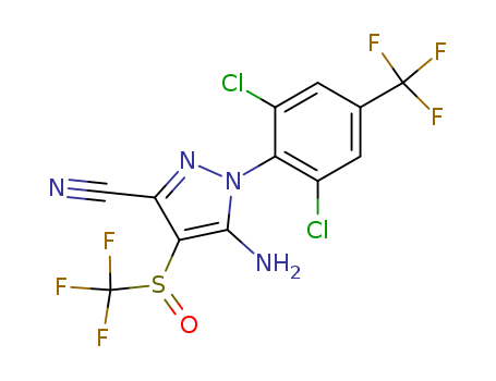 5-amino-1-[2,6-dichloro-4-(trifluoromethyl)phenyl]-4-(trifluoromethylsulfinyl)pyrazole-3-carbonitrile;MB 46030;RM 1601;Fipronil (JAN);1H-Pyrazole-3-carbonitrile, 5-amino-1-(2,6-dichloro-4-(trifluoromethyl)phenyl)-4-((trifluoromethyl)sulfinyl)-;Fluocyanobenpyrazole;Fipronil 95%TC; |